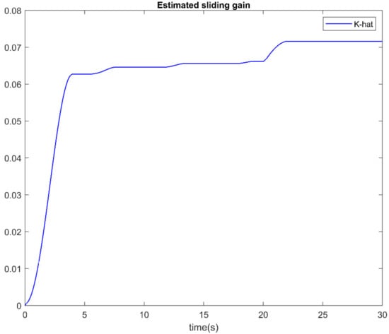 where is a small positive constant and denotes the switching gain, which is bounded as with represents the estimation error.