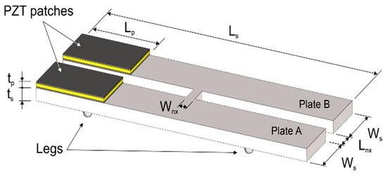 Next, two electroded PZT patches (PIC 255 from PI Ceramic GmbH, Lederhose, Germany) with a thickness