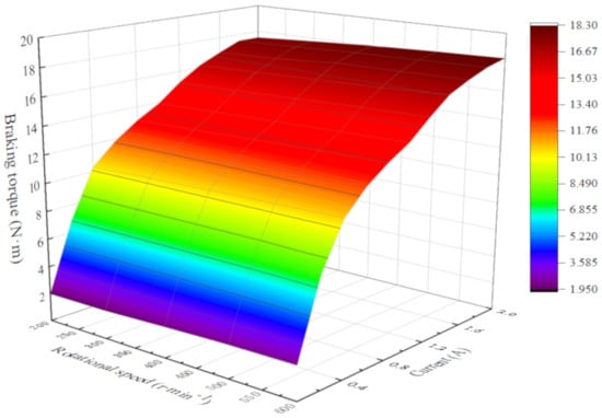 Dynamic variation of braking torque under different currents and rotational speeds.