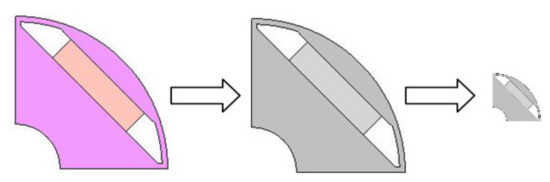 In DL CNN training, typical IPMSM motor geometries were generated using JMAG Designer [29]. This tool provides an initial geometry shown in Figure 1, and several parameters that can be varied including stator and rotor diameters, numbers of poles and slots, slot size, permanent magnet (PM) size, and size of rotor slits.