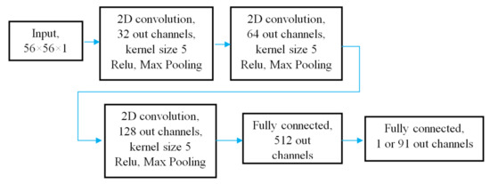 In this study, a simplistic CNN shown in Figure 4 is used to evaluate the possibility of training shallow networks for electric machine design projects. Table 2 shows that this CNN consists of three convolutional and two fully connected (linear) layers and has less than 1 million parameters. The ratio of the number of channels in convolutional and linear layers mimics the intermediate layers of AlexNet [39]. This architecture was inspired by the success of shallow networks on image classification tasks.