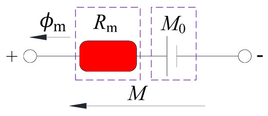 Equation (8) shows that the magnetic potential generated by the permanent magnet can be divided into two parts: one is provided to the external magnetic circuit, and the other is consumed by the internal reluctance of the permanent magnet itself.