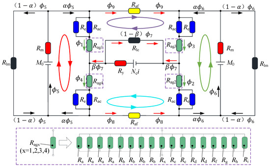 The total flux at the four air gaps can thus be obtained from Equations (15)–(20)