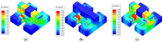 The magnetic field cloud diagram of NLFM. (a) x = 0 mm, = −2 A. (b) x = 0 mm, = 0 A. (c) x = 0 mm, = 2 A.