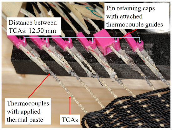 Thermocouples after having been attached to the TCAs, with thermal paste applied.