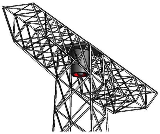 To demonstrate the vibration damping performance of the SPPTMD, a numerical analysis is performed based on a 53.9 m high power transmission tower [45], which is a typical high-rise structure. As shown in Figure 8, the transmission tower is simplified by 15 DOFs, and has a mass of 19,621 kg and a natural frequency of 1.87 Hz. The layout of the SPPTMD on the transmission tower is illustrated in Figure 9.