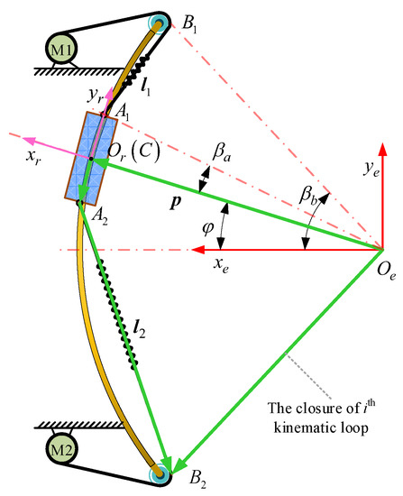 The rest is organized as follows. In Section 2, the schematic structure of the twin-motor cable driven system, a typical cable driven parallel mechanism, is introduced, and kinematics and dynamics models are formulated analytically. In Section 3, based on the singular perturbation theory, an adaptive composite control with -modification is proposed. In Section 4, the stability of the closed-loop system is proved, and sufficient conditions for the flexible system are given. In Section 5, the developed twin-motor cable driven system is presented, and an experiments are conducted. The experimental results are utilized to validate the proposed control method. Finally, the research work is concluded in Section 5.