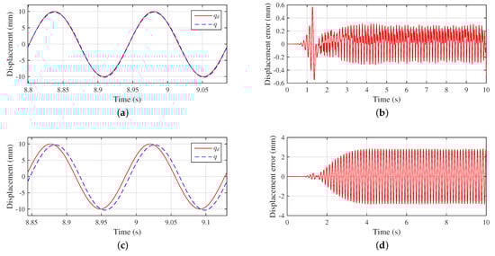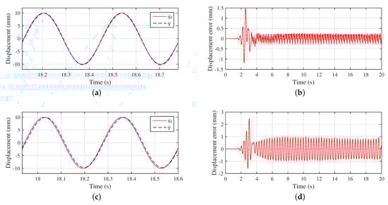 The frequency is further increased to 5 Hz, as shown in Figure 7. Compared with 3 Hz, the performance of the TAC deteriorates. Specifically, the tracking error increases from ±1 to ±1.5 mm, and the phase lags obviously. While the -CAC continues to maintain high accuracy, its error is kept within ±0.5 mm, and phase follows closely. The -CAC shows advantage at 5 Hz.