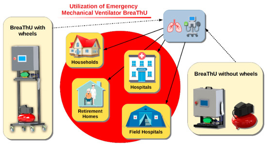 - Hospital, field hospitals and household utilization—As well as hospital utilization of the ventilator BreaThU, it also has potential to be applied in field hospitals and in households, especially for seniors.