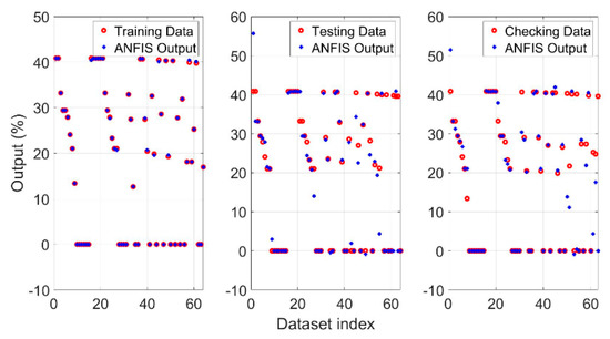 Considering all ANFIS layers, one has premise parameters —parameters given by MF—and , labeled as consequent parameters. The aim of the training algorithm is to tune premise and consequent parameters in order to make the ANFIS output match the training data [24]. There are several learning techniques which could be used such as backpropagation [25], computing error signals recursively from the layer 5 output backward to the input nodes (layer 1), or genetic algorithm (GA) [26]. In this study, a hybrid learning algorithm will be adopted, which is highly efficient in training the ANFIS system [27].