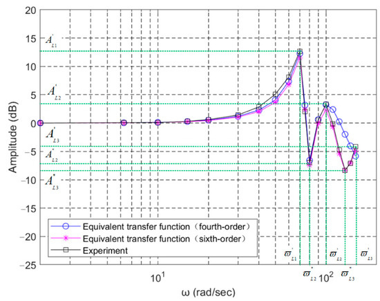 In Figure 16, two obvious hydro-mechanical resonance peaks can be seen clearly and the third also emerges since its composite frequency ωc3 is 145 rad/s, lower than the corresponding load structural frequency and located in the plotted frequency scope. As shown, a sixth-order model fits the data better than a fourth-order.
