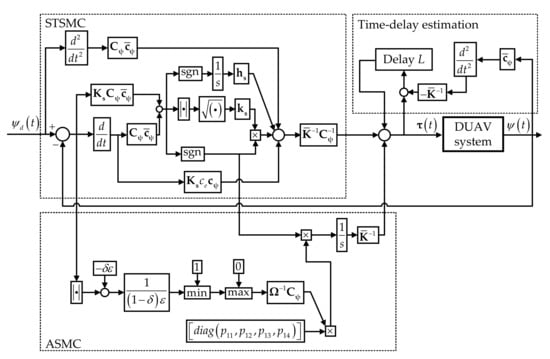 The DUAV actuators are controlled using the proposed control scheme in Equations (10) and (14). The adaptation gainis upper bounded by a positive constant for, i.e.: