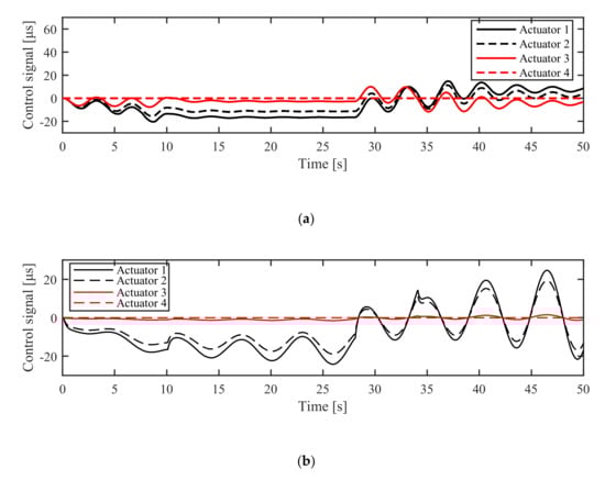 The experimental control signal in AM mode: (a) Proposed controller; (b) PID.