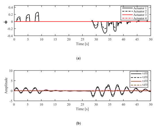 where and is a positive semi-definite symmetric matrix. denotes the order of the actuators. Substituting the control law in Equation (7) into Equation (3), and combined with the sliding manifold variable from Equation (4), the time derivative of the Lyapunov function in Equation (8) yields the following: