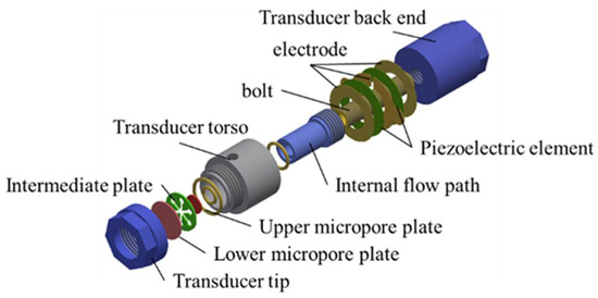 - Kiyama, Y.; Tominaga, Y.; Kanda, T.; Suzumori, K.; Kishi, T.; Yamada, Y.; Seno, N. Evaluation of Generated Micro Droplets Using Micropore Plates Oscillated by Ultrasonic Torsional Transducers. Sens. Actuators A 2012, 185, 92–100. [Google Scholar] [CrossRef]