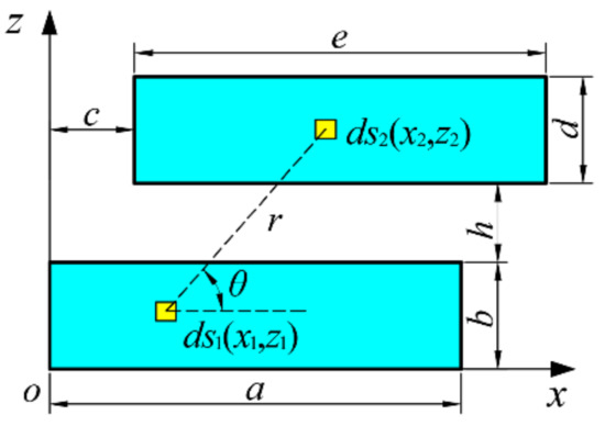 Figure 6 illustrates the schematic diagram of rectangular–rectangular CPMUs. Substituting the integration area into Equations (6) and (7), it yields [33]: