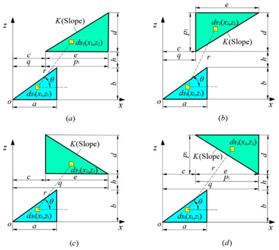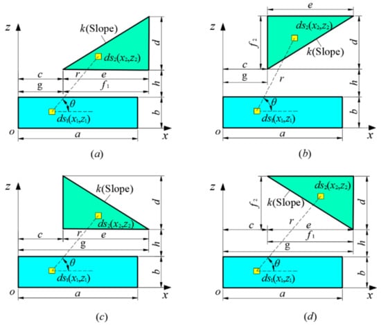 Figure 8 illustrates the schematic diagram of four different types of triangular–triangular CPMUs. Similarly, substituting the integration area into Equations (6) and (7), it yields: