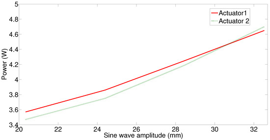 Figure 5, where the electrical power is represented according to the sine wave amplitude for the two actuators (long and short).