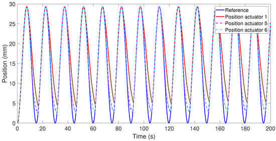Figure 8 depicts the response of Actuators 1, 5, and 6 when the reference signal was the same sine wave and each actuator displaced a payload of 3 kg.