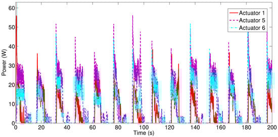 The electrical power consumption of Actuators 1, 5, and 6 is presented in