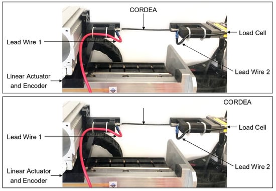 The multiplicative factor 2 in (7) arises due to the fact that two stacked film layers exist in the system. For a 0% strain configuration, the measured capacitance for the CORDEA is 90% of the theoretically determined value, while the hollow RDEA only achieved 74% of such a value. It can be assumed that this is due to the formation of wrinkles during the rolling process because the film is lacking support. If air is trapped between the films, it unavoidably leads to a lower equivalent capacitance due to its lower relative permittivity as well as to the increased distance between the electrodes. This wrinkling effect can also explain the difference in the slope of the stress-strain curves in Figure 12. Wrinkled portions of the film get straightened out instead of being stretched, thus leading to an apparent decrease in stiffness. All those effects highlight the benefits of the novel CORDEA design. Additionally, the equivalent serial resistance of CORDEA specimen 1 has been measured by the LCR meter. It ranges between 23.5 kΩ and 28.6 kΩ, depending on the actual strain value. For further info on the intrinsic conductivity of the silicone material, instead, the reader may refer to [,].