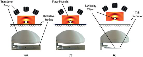 - Omirou, T.; Marzo, A.; Seah, S.; Subramanian, S. LeviPath: Modular Acoustic Levitation for 3D Path Visualisations. In Proceedings of the CHI ’15: Proceedings of the 33rd Annual ACM Conference on Human Factors in Computing Systems, Seoul, Korea, 19–23 April 2015. [Google Scholar] [CrossRef]