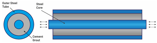 Section view of buckling restrained braces (BRBs) (Adapted with permission from [5]).