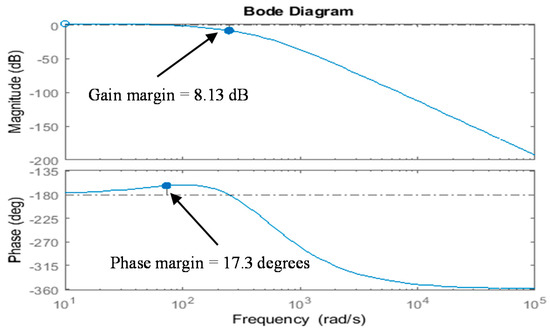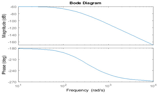 From the characteristic equation of the AMB plant model, it is observed that the plant is unstable with a pole at 91.9 rad/s in the y-plane. In this study frequency response method is employed for the analysis and design of the controller. From Figure 6, it can be seen that at the corner frequency, the gain is less than 0 dB with a phase delay of fewer than −180 degrees thus the AMB system is unstable. The compensator is designed for the stable functioning of the AMB system with desired performance specifications the Loop transfer function is utilized.