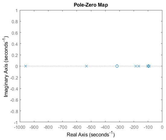 For the stable functioning of the closed-loop AMB system, a positive phase margin near the gain crossover frequency is desired. The compensators are designed by employing the frequency response analysis method utilizing an iterative approach. The loop is shaped in a way that for minimal steady-state error and improved settling time, high loop gain is desired at low frequency. However, for robust and stable functioning, positive phase is desired at the crossover frequency. The frequency response for the vertical plane is shown in Figure 7. The phase margin is 17.3 degrees and the gain margin is 8.13 dB. The stable closed-loop system’s poles and zeros are illustrated by utilizing complex argand diagram (Figure 8). While the AMB system parameters are listed in Table 1.