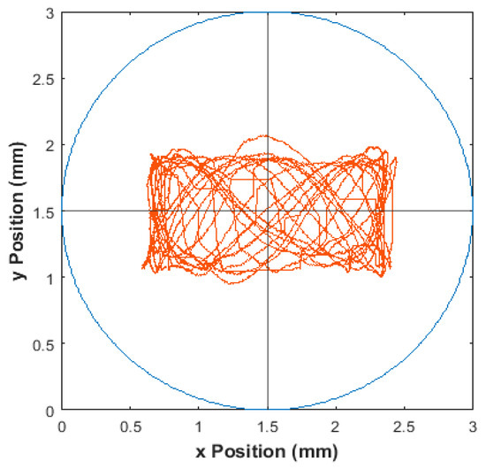The dynamic behavior is also illustrated by the orbit plots. The orbit plot is constituted to have a better understanding and visualization of the rotor’s rotational motion and the performance of the controllers during dynamic operation.