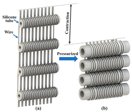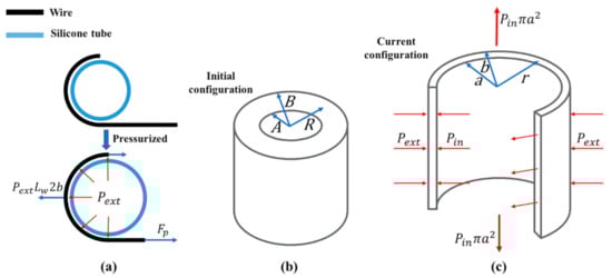Figure 3. Hence, to be approximate, the two forces can be decoupled and solved separately. The wires are densely winded, and the cross-section of the silicone tube is always circular. Therefore, the complicated expansion process of the silicone tube can be simplified into the free expansion under uniform pressure