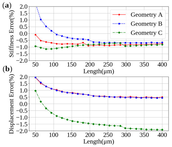 Percent error for: (a) stiffness and (b) deflection.