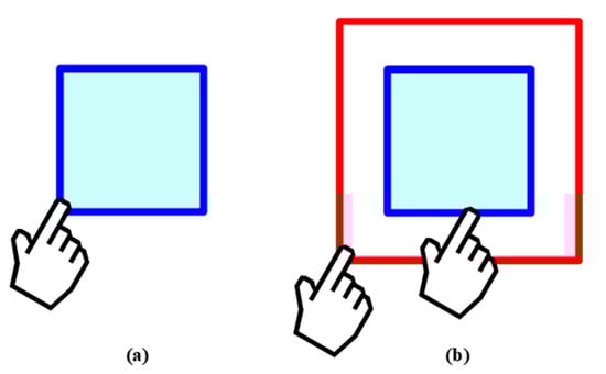The interactive process of two different control modes: (a) Direct control mode; (b) predictive control mode. The red and blue bounding boxes represent the trigger boundary and the edge of the virtual cube.