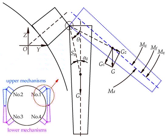 where m1 is the mass of the outer wing and its accessories; g is the acceleration of gravity; sg is the distance between the center of gravity Og and O0; ag is the angle formed by the line OgO0 and z-axis, as shown in Figure 2.