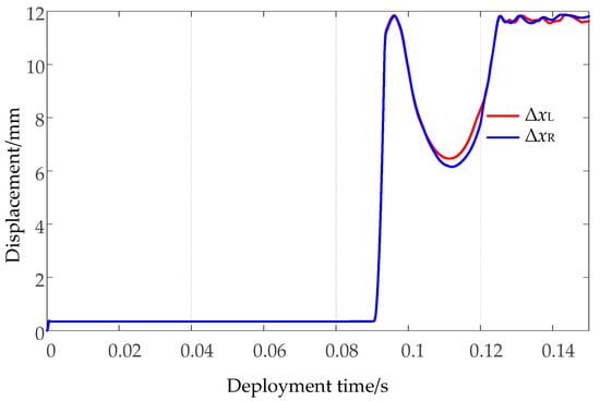 The relationships between the displacement of locking springs and deployment time are shown in Figure 8.