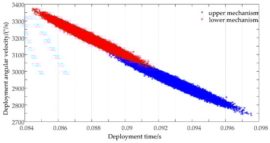 The results show that the deployment time in the specified position of the upper mechanism is greater, despite its deployment angular velocity in the specified position being smaller than the lower mechanism. Consequently, both deployment performances need to be considered when calculating reliability.