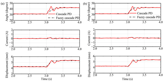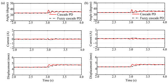 - Compared with the cascade controller, the response times of the designed fuzzy cascade controller at the displacement disturbance and the force disturbance are 0.50 s and 0.60 s faster, respectively, and the suspension system with the fuzzy cascade controller has better robustness and smaller overshoot.