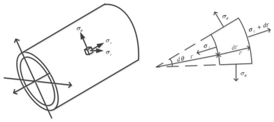 Figure 6 [29] shows the physical stress distribution of the micro-body in the three-dimensional stress state of the thick-walled cylinder.