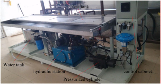 According to the actual requirements, the experimental platform is built as shown in the Figure 15, which mainly includes the test tank, the pressurized cylinder, the water tank, the hydraulic station and the control cabinet.