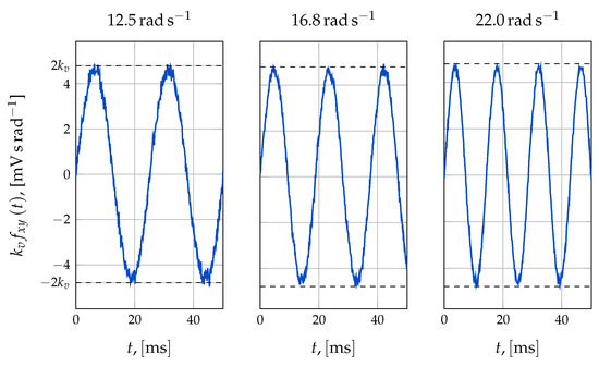The procedure described in the previous section for the open-circuit test was performed by coupling a controlled DC motor to the shaft of the BLDC motor. The line voltages were measured using voltage sensors and the speed was determined with an incremental encoder. Figure 5 shows the results of this test at different speeds, (12, 16, and 22 ) displaying the obtained voltage measurements divided by the steady-state rotor speed of the respective test, i.e.,