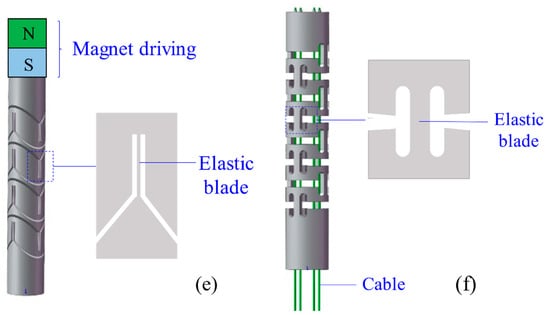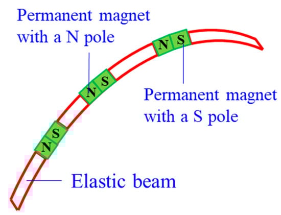 Magnetic CCRs are another type of sub-millimetre continuum robots, including permanent-magnet-joint CCRs [103] and magnetic-fluid CCRs [23]. Permanent magnets and magnetic fluids are controlled in the magnet field without any actuation wires. A permanent-magnet-joint CCR is shown in Figure 11. The elastic beams are actuated by the interactions of N and S poles. As for magnetic-fluid CCRs, the magnitude of the magnet field affects the viscosity of the magnetic fluid, and the viscosity can be close to the solid viscosity with the increase of the magnitude. Magnet CCRs can also be mounted on medical devices and serving as a guide.