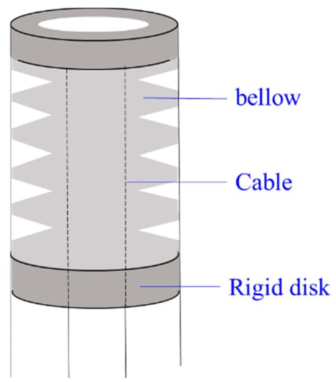Bellow CCRs are lightweight with a smooth curvature. Another advantage of the bellow is to be employed as an anti-buckling support structure if they are made of NiTi material [43], as NiTi is more rigid than polyamide with enough elasticity. However, bellow CCRs are sometimes unreliable for the non-stationarities during pneumatic or hydraulic actuation [97]. The rigidity of polyamide bellow CCRs is relatively low, so the disks are usually added around the bellow to increase the rigidity [98].
