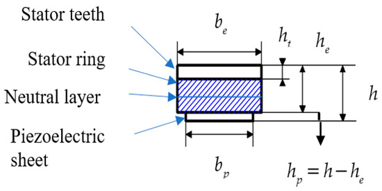 The cross-sectional moment of inertia of the stator ring and piezoelectric sheet can be expressed as: