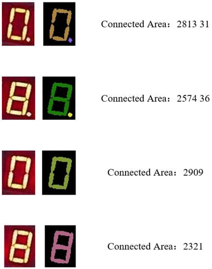 In the image processing, the domain [39] can be added to the mark for processing. The thesis proposes an analysis and judgment algorithm to solve the problem of whether there is a decimal point in the digital area of the dial. A single digital area may appear without a decimal point or with a decimal point. The connected domain attribute of the digital area can be classified as the criterion. Connected area analysis is mainly for the image after binarization. First, the connected area is marked on the binarized image by the seed filling method. The main steps are as follows: