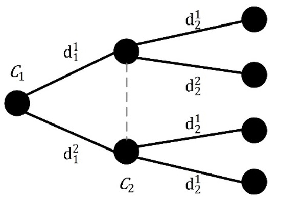 where and are the decisions of and , respectively; and are the strategy sets of the two cars; is the decision set of after the decision of ; is the decision under the decision set; and , are the final decisions of the two vehicles.