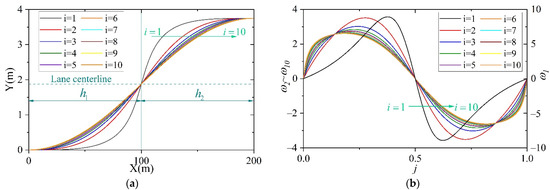 In order to meet the requirements of lane-changing lateral velocity and lateral acceleration at the starting and ending to be continuous, the lane width m, then ; .