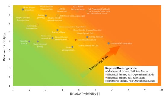 In addition to the quantitative assessment, qualitative criticality analyses assist in identifying critical failure modes and focus areas of the EMA. This analysis, however, is subject to an increased level of uncertainty, as literature data are limited and available data are oftentimes referring to similar but non-identical EMA architectures. Therefore, the following analysis, illustrated in Figure 4, provides only an approximate data basis.