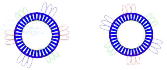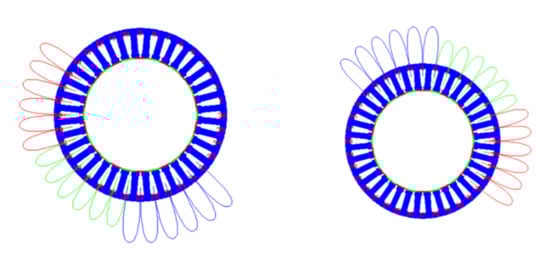 Unbalanced short circuits can be avoided by a special constellation of the winding coil arrangements. Two of them are shown in Figure 6 and Figure 7.