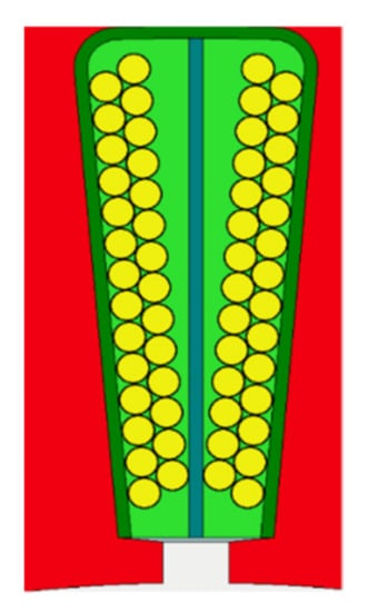 - The symmetrical SC can be avoided by having an extensive insulation structure in the slot. Both listed failure scenarios, in principle, have to be caused by multiple failures. Therefore, the wire insulation has to fail, and consequently, a heating-up process has to be induced by the effect of melting of the varnish coating isolation of the wire (Figure 8). Therefore, an undetected inter-turn SC has to be presented for a longer period, resulting in failures of more than one wire. To weaken this kind of failure, layer by layer wire turns have to be installed, as shown in Figure 9.