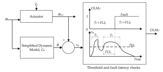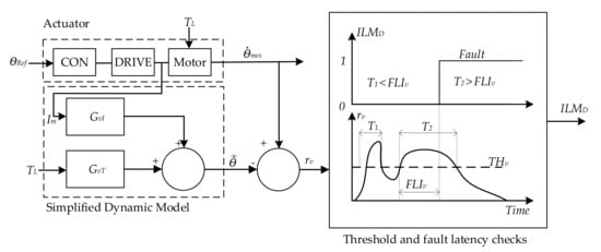 The ILM function generates a decision signal ILMD which has zero logic by default and is raised to one logic if an abnormal event is detected. The determination of GvAB and GvA is based on data-based identification procedures for the actuator during the nominal and the fail-operational modes, and it is discussed in Section 5.2.